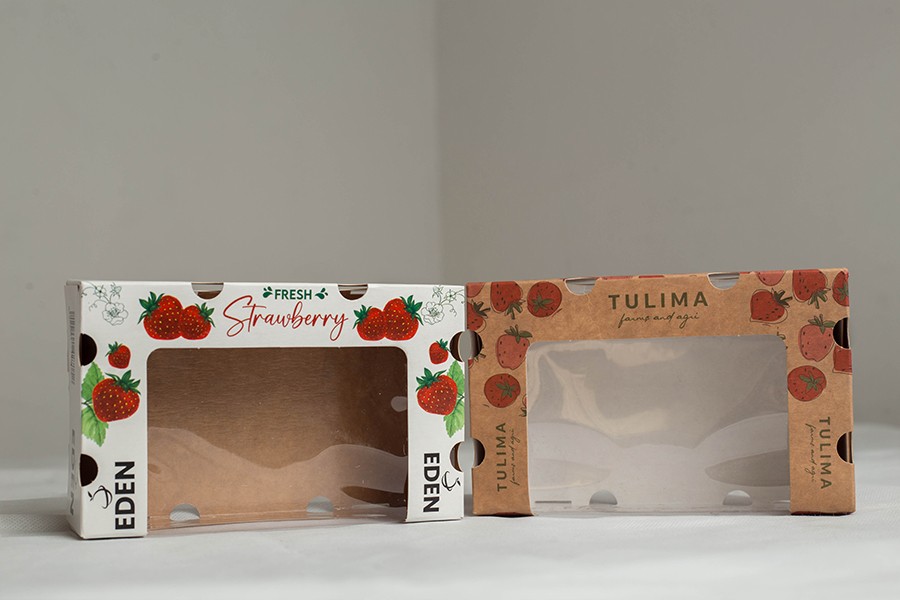 Durable and Sustainable Packaging: "EcoFresh Clamshells" offer an innovative solution for fresh produce like berries, grapes, and tomatoes. Made from strong, eco-friendly paperboard, they provide both protection and visibility for your products, with custom branding options to enhance shelf appeal.